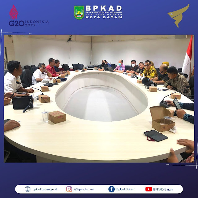 Kepala Bidang Anggaran BPKAD Kota Batam beserta Kepala Sub Bidang Anggaran Pendapatan Daerah dan Kepala Sub Bidang Anggaran Belanja Daerah menerima kunjungan kerja DPRD Pelelawan terkait pembahasan RAPBD. Acara dilaksanakan di Ruang Rapat Embung Fatimah Lt. 4 Kantor Wali Kota Batam.